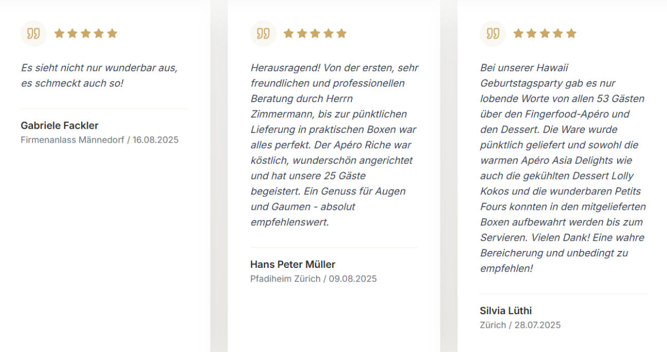 Catering-Betrieb aus Zürich, spezialisiert auf