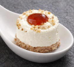 - Hüttenkäse auf Walnuss-Biskuit, Hagebutten Gel