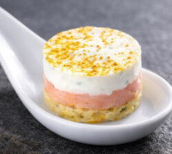 Räucherlachs, Kräuter-Crème auf Kartoffelrösti (35x30g)