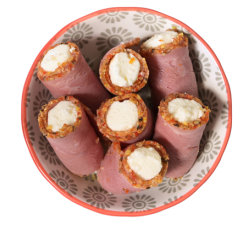 Appenzeller-Ziegenkäse und Tomaten. Gerollt,